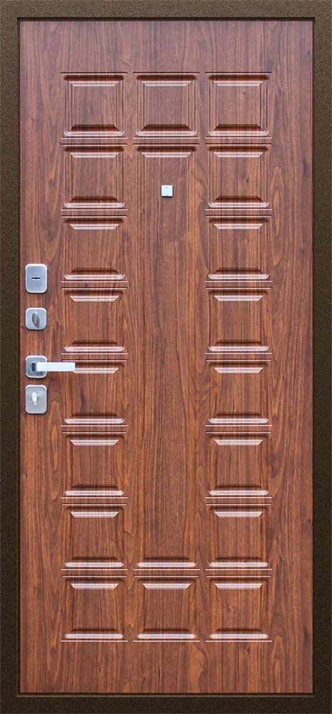 Надежная входная Дверь Спартак Орех темный премиум класса по цене 35 267 руб. Большая толщина стали защитит от проникновения в ваш дом, квартиру или коттедж. Используется очень качественная фурнитура: замки, цилиндры, ручки, защелки. Покрытие и отделка двери изготовлено под внимательным контролем производителя. Дверь имеет долгий срок службы и гарантию.