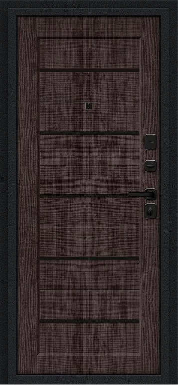 Надежная входная Дверь Браво Борн/SBlack Букле черное/Wenge Melinga премиум класса по цене 32 567 руб. Большая толщина стали защитит от проникновения в ваш дом, квартиру или коттедж. Используется очень качественная фурнитура: замки, цилиндры, ручки, защелки. Покрытие и отделка двери изготовлено под внимательным контролем производителя. Дверь имеет долгий срок службы и гарантию.