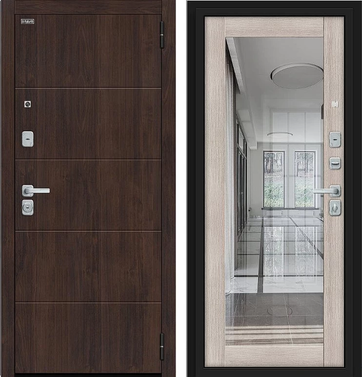 Надежная входная Дверь Браво Флэт/BChrome Almon/Cappuccino Melinga премиум класса по цене 43 467 руб. Большая толщина стали защитит от проникновения в ваш дом, квартиру или коттедж. Используется очень качественная фурнитура: замки, цилиндры, ручки, защелки. Покрытие и отделка двери изготовлено под внимательным контролем производителя. Дверь имеет долгий срок службы и гарантию.