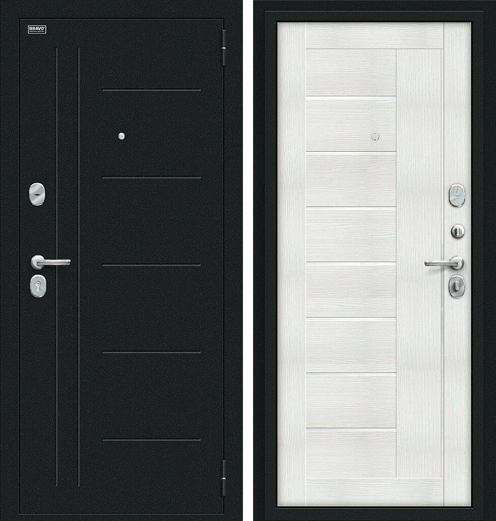 Надежная входная Входная дверь Проф Букле черное/Bianco Veralinga BR4547 премиум класса по цене 34 549 руб. Большая толщина стали защитит от проникновения в ваш дом, квартиру или коттедж. Используется очень качественная фурнитура: замки, цилиндры, ручки, защелки. Покрытие и отделка двери изготовлено под внимательным контролем производителя. Дверь имеет долгий срок службы и гарантию.