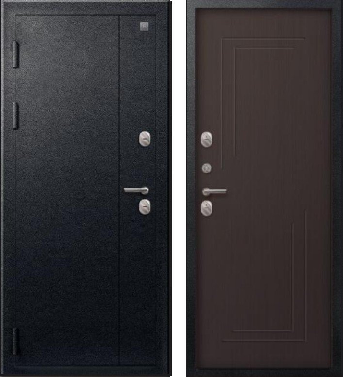 Надежная входная Дверь Термо-100 Черный муар - Темная лиственница премиум класса по цене 46 067 руб. Большая толщина стали защитит от проникновения в ваш дом, квартиру или коттедж. Используется очень качественная фурнитура: замки, цилиндры, ручки, защелки. Покрытие и отделка двери изготовлено под внимательным контролем производителя. Дверь имеет долгий срок службы и гарантию.