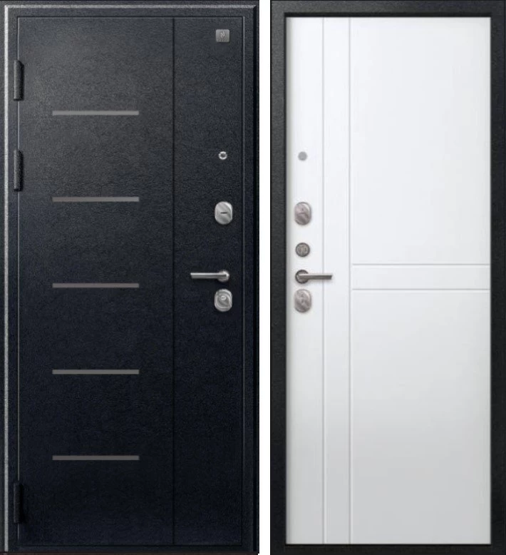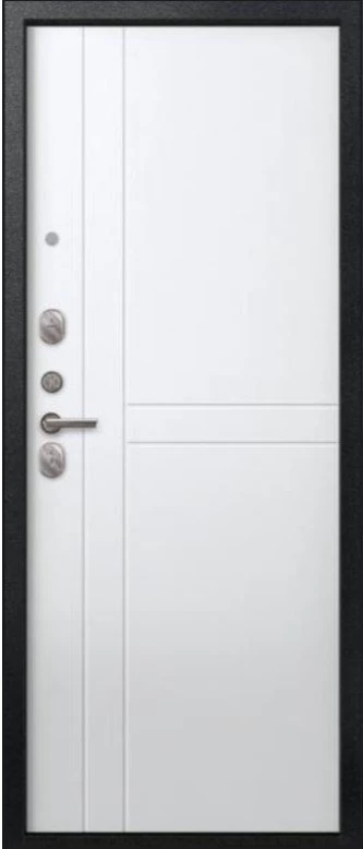 Надежная входная Дверь V-06 Черный муар - Белый премиум класса по цене 39 917 руб. Большая толщина стали защитит от проникновения в ваш дом, квартиру или коттедж. Используется очень качественная фурнитура: замки, цилиндры, ручки, защелки. Покрытие и отделка двери изготовлено под внимательным контролем производителя. Дверь имеет долгий срок службы и гарантию.