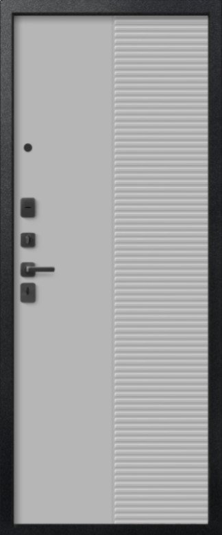 Надежная входная Дверь V-18 Черный муар + Кашемир графит - Кашемир сильвер премиум класса по цене 47 817 руб. Большая толщина стали защитит от проникновения в ваш дом, квартиру или коттедж. Используется очень качественная фурнитура: замки, цилиндры, ручки, защелки. Покрытие и отделка двери изготовлено под внимательным контролем производителя. Дверь имеет долгий срок службы и гарантию.