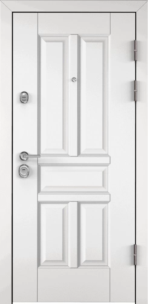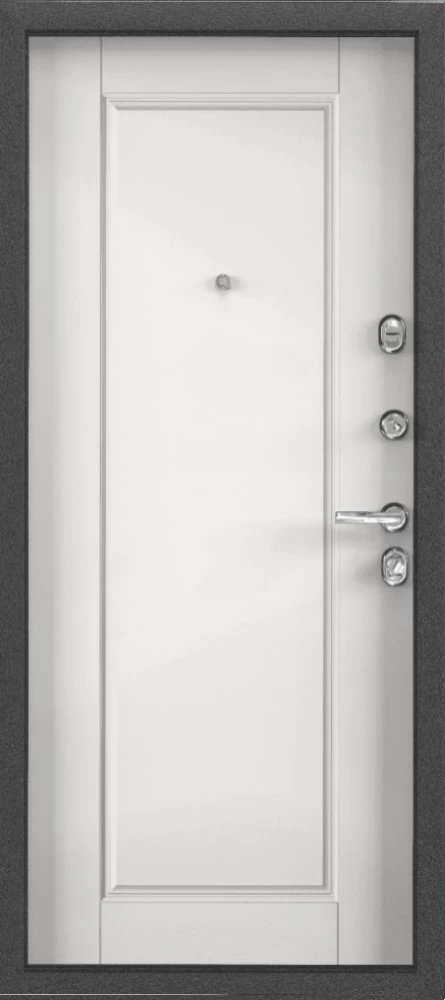 Надежная входная Дверь Цербер 3К Чёрный муар Мистраль Белый Сменная панель премиум класса по цене 43 567 руб. Большая толщина стали защитит от проникновения в ваш дом, квартиру или коттедж. Используется очень качественная фурнитура: замки, цилиндры, ручки, защелки. Покрытие и отделка двери изготовлено под внимательным контролем производителя. Дверь имеет долгий срок службы и гарантию.